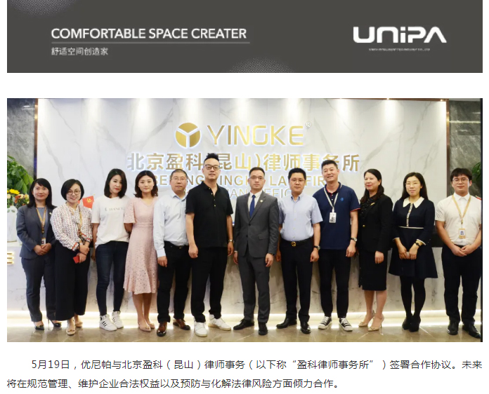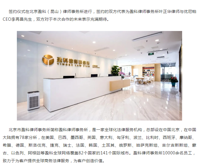 优尼帕与盈科律师事务所达成长期法律合作,为市场运作提供有力法律保障